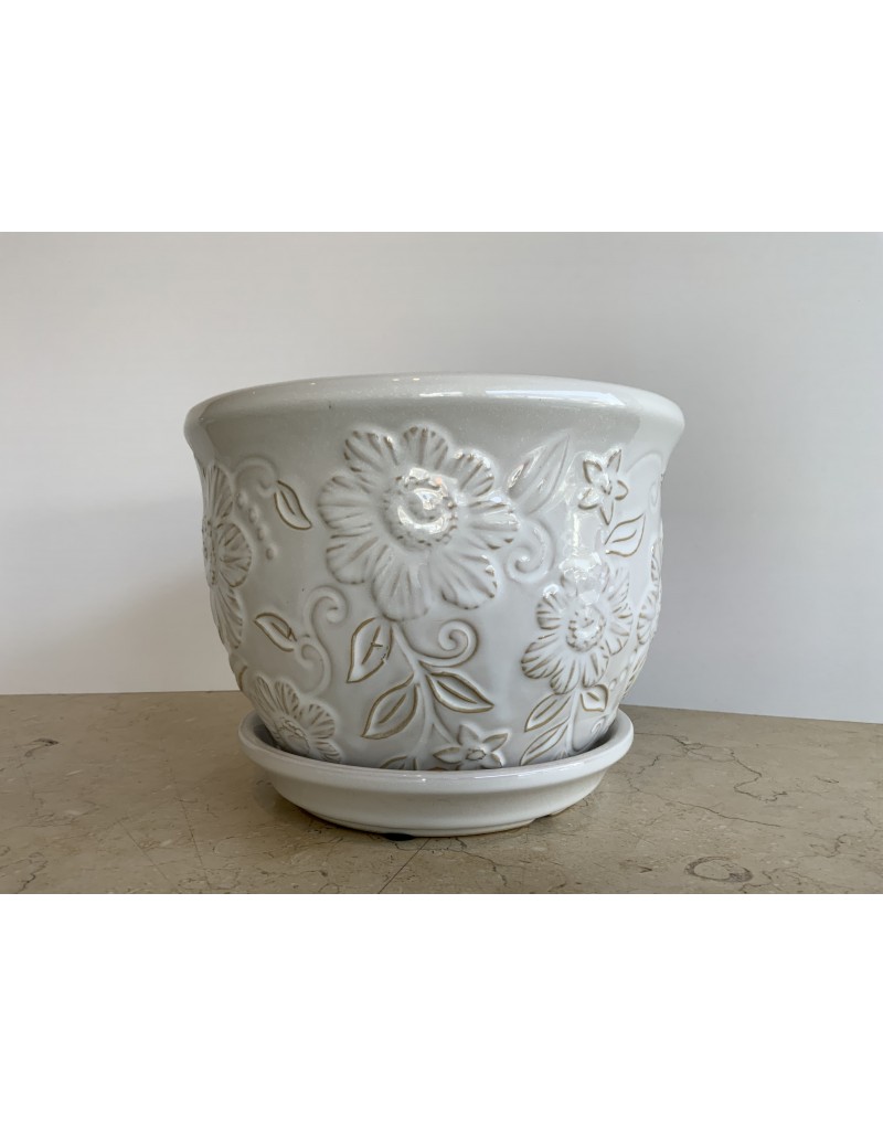 MACETA EN CERÁMICA MOD. FLORES SILVESTRES C/PLATILLO