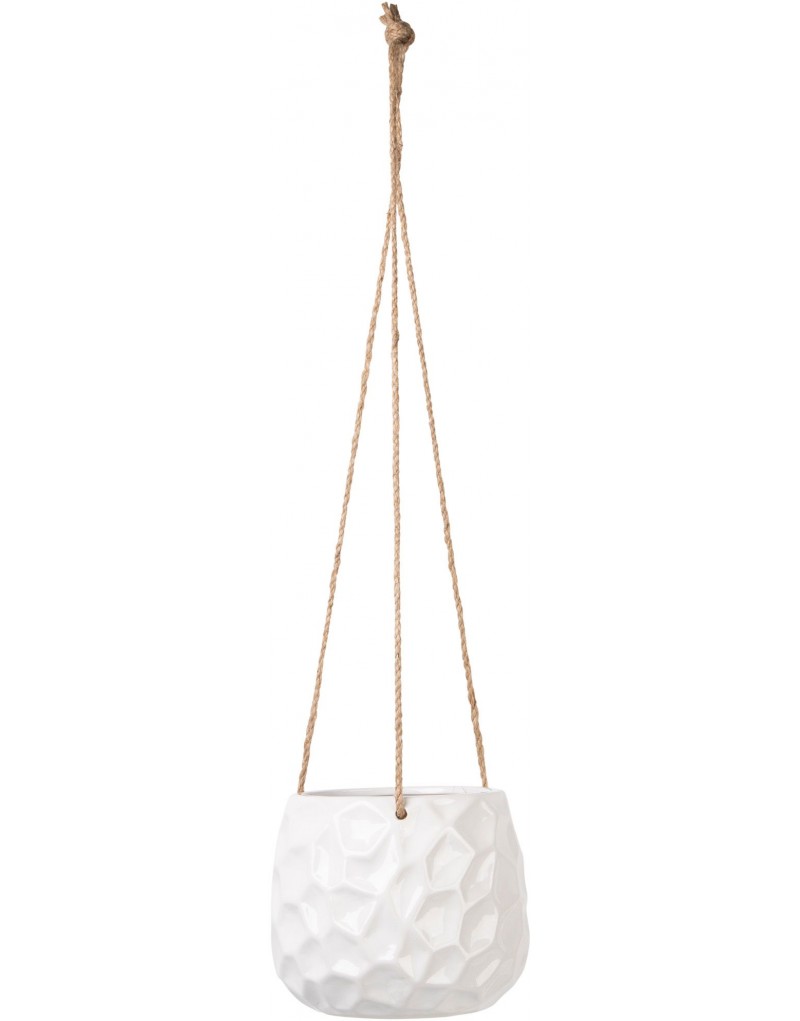 MACETA COLGANTE BLANCO BRILLANTE ORGÁNICO.