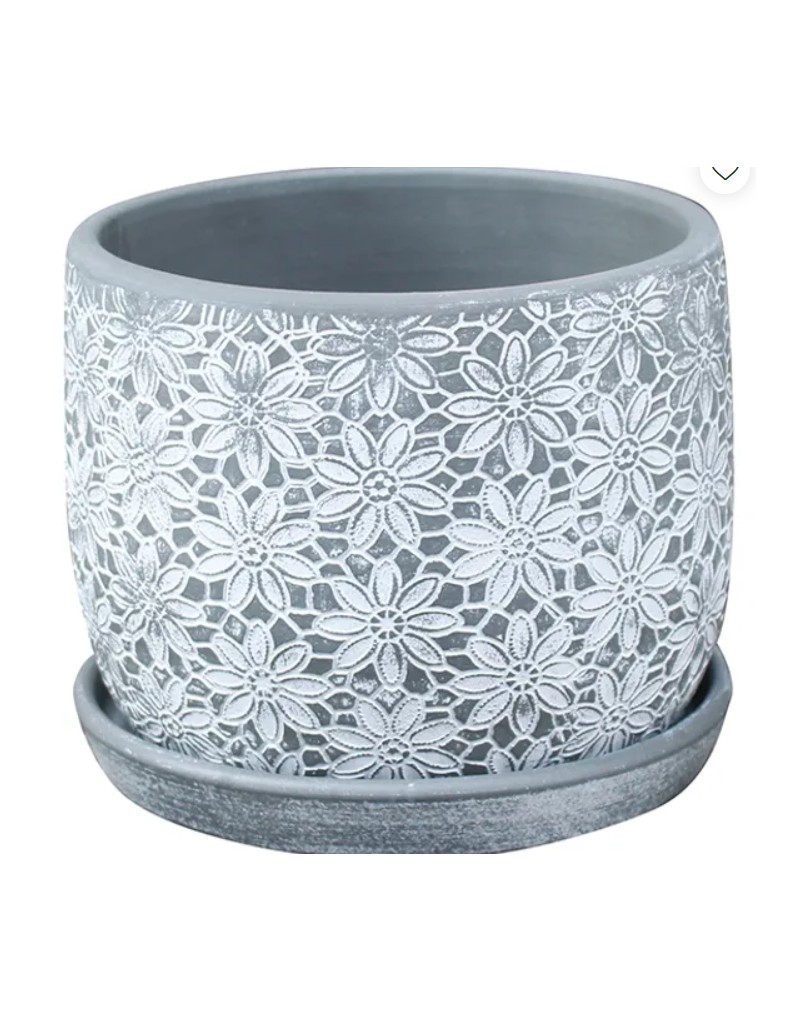 MACETA FLORAL GRIS C/PLATO 5".5" X4".5"