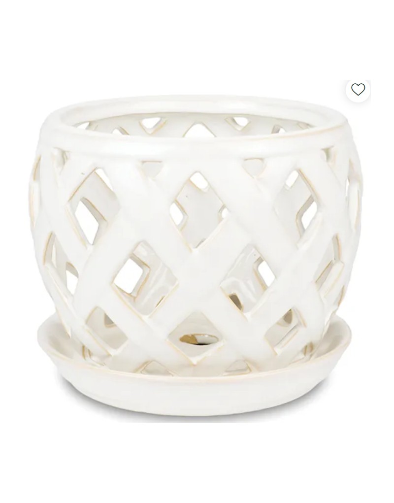 PORTA MACETA C/ PLATITO BLANCO HUESO